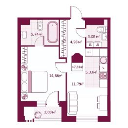 Продаётся 1-комнатная квартира в строящемся доме (Герцена, 33), срок сдачи: II-кв. 2026, общей площадью 47.81 кв.м., на 2 этаже. Новый жилой комплекс Secret Place от Специализированного застройщика "Сикрет плэйс" расположен по адресу: г. Тюмень, по ул. Герцена.