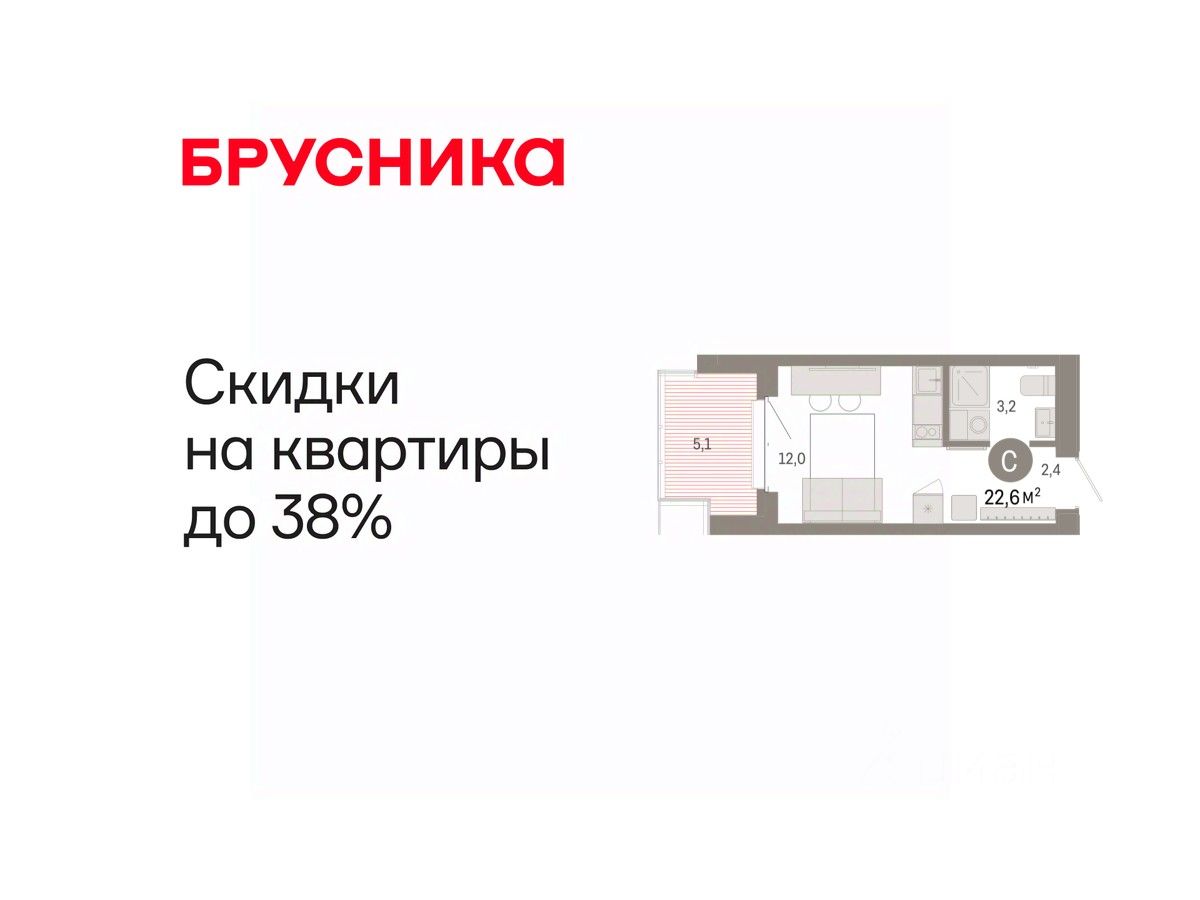 1-комн. студия с предчистовой отделкой в Кварталы "На Минской" на 6 этаже. Общая площадь: 22.64 кв.м. Высота потолков 2.7 м.