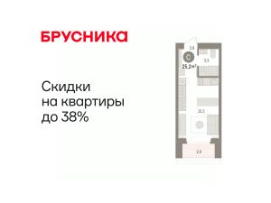 1-комн. студия с предчистовой отделкой в Кварталы "На Минской" на 10 этаже. Общая площадь: 25.16 кв.м., площадь гостиной 15.2 кв.м., из которых 5 кв.м. выделено под кухонную зону. Все окна выходят на одну сторону. В квартире один балкон, один совмещенный санузел. Высота потолков 2.7 м.
