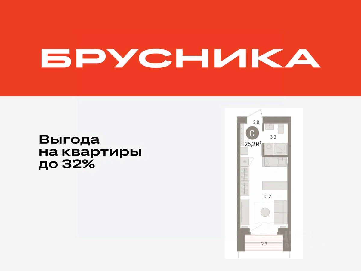 1-комн. студия с предчистовой отделкой в Кварталы "На Минской" на 13 этаже. Общая площадь: 25.16 кв.м., площадь гостиной 15.2 кв.м., из которых 5 кв.м. выделено под кухонную зону. Все окна выходят на одну сторону. В квартире один балкон, один совмещенный санузел. Высота потолков 2.7 м.