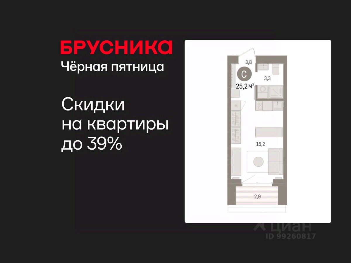1-комн. студия от застройщика с предчистовой отделкой в Кварталы "На Минской" на 6 этаже. Общая площадь: 25.16 кв.м., площадь гостиной 15.2 кв.м., из которых 5 кв.м. выделено под кухонную зону. Все окна выходят на одну сторону. В квартире один балкон, один совмещенный санузел. Высота потолков 2.7 м.