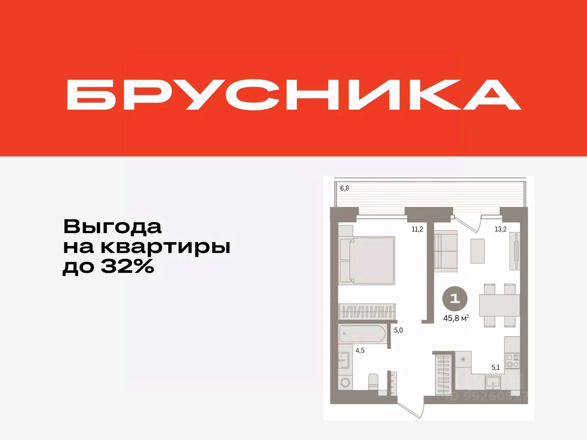 Квартира с кухней-гостиной и одной спальней в жилом районе "Речной порт". Особенности планировки: окна в пол, вид во двор, предчистовая отделка, балкон.