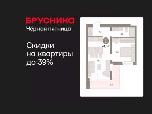 Квартира с кухней-гостиной и одной спальней в кварталах "На Минской". Особенности планировки: панорамное остекление, лоджия, предчистовая отделка.