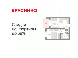 Квартира с кухней-гостиной и одной спальней в кварталах "На Минской". Особенности планировки: балкон, вид во двор, предчистовая отделка.