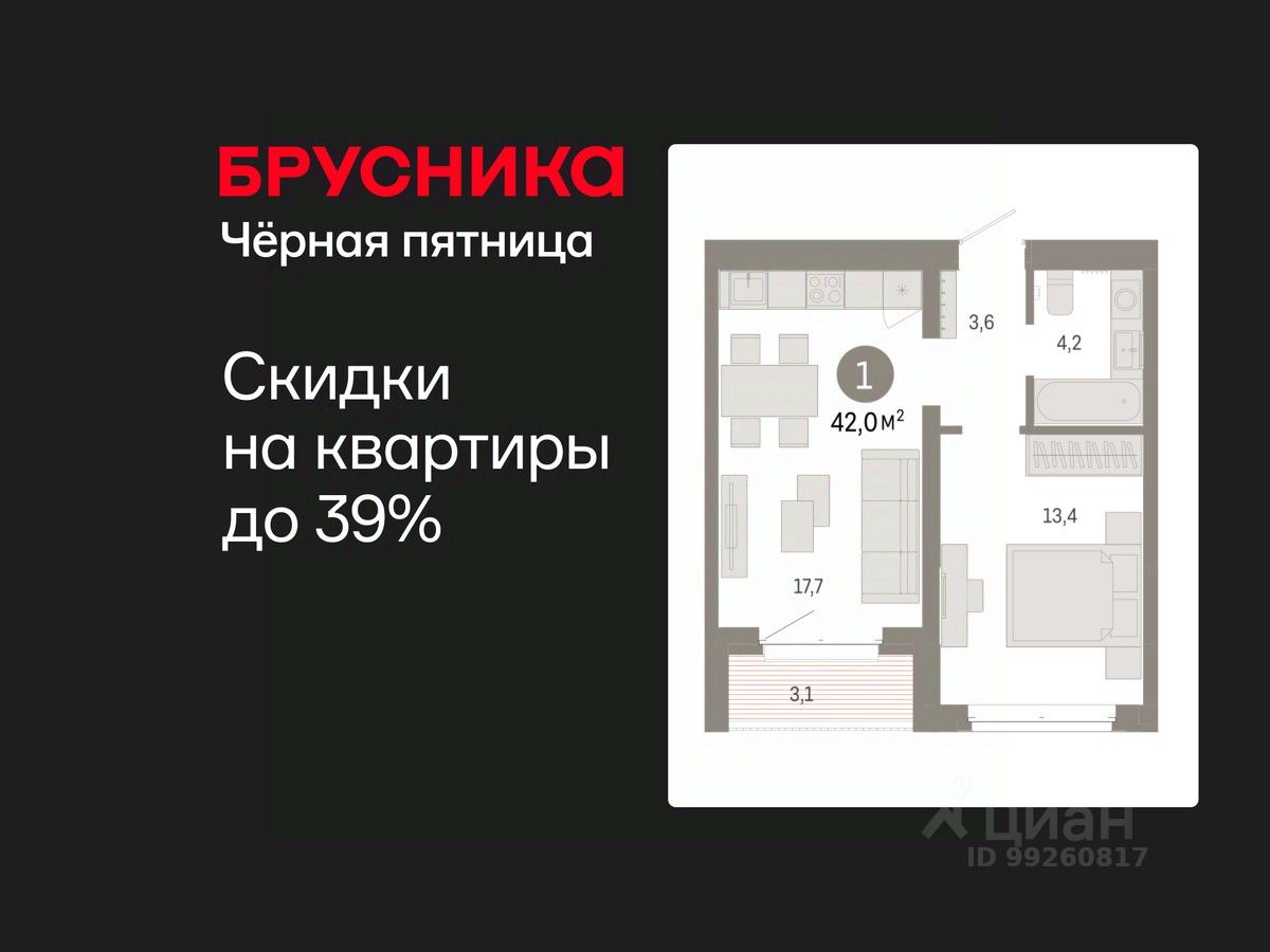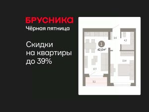 Однокомнатная квартира от застройщика с предчистовой отделкой в Кварталы "На Минской" на 6 этаже. Общая площадь: 42 кв.м., жилая: 13.4 кв.м., площадь просторной кухни-гостиной: 17.7 кв.м. Все окна выходят на одну сторону. В квартире одна лоджия, один совмещенный санузел. Высота потолков 2.7 м.