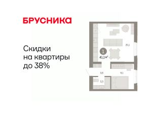 Продается 1-комн. квартира от застройщика с предчистовой отделкой в Кварталы "На Минской" на 8 этаже. Общая площадь: 41.06 кв.м. Высота потолков 2.7 м.