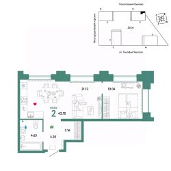Продается 2комнатная квартира от застройщика "Страна Девелопмент". Стоимость указана без учета акций. Квартира на 27 этаже, площадь квартиры 42,15 кв. м. Сдача — в 3 квартале 2025 года.