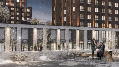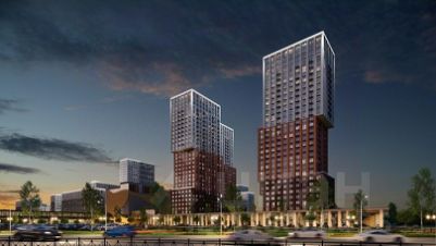 Четыре 32-этажные башни со смещенными осями, объединенные общим стилобатом. На крыше дома появятся детские и спортивные площадки, зоны для релакса и отдыха. А в самом стилобате — торговая галерея и паркинг.