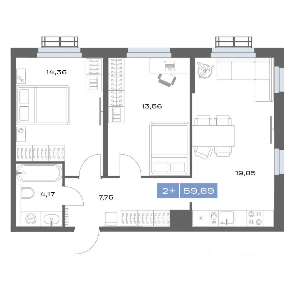 Продаётся 2-комнатная квартира в строящемся доме (Дом 12), срок сдачи: II-кв. 2027, общей площадью 59.74 кв.м., на 25 этаже. Медный - дом в Заречном районе Тюмени.