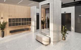 В квартире предчистовая отделка: стены оштукатурены и выровнены по общему уровню, на полу слой цементно-песчаного раствора с дополнительным гидроизоляционным слоем в ванной. Проведена электрика и готовы розетки с выключателями. А ещё установлены сейф-двери и счётчики с телеметрией.
