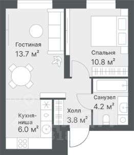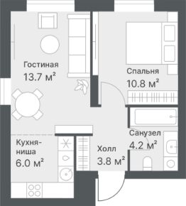 Первоначальный взнос 20% или 1 480 694 руб Евродвухкомнатная квартира площадью 38,5 м²
