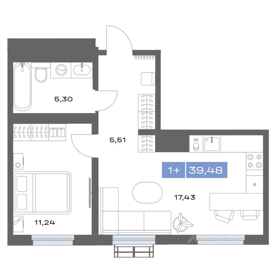 Продаётся 1-комнатная квартира в строящемся доме (Дом 12), срок сдачи: II-кв. 2027, общей площадью 39.49 кв.м., на 23 этаже. Медный - дом в Заречном районе Тюмени.