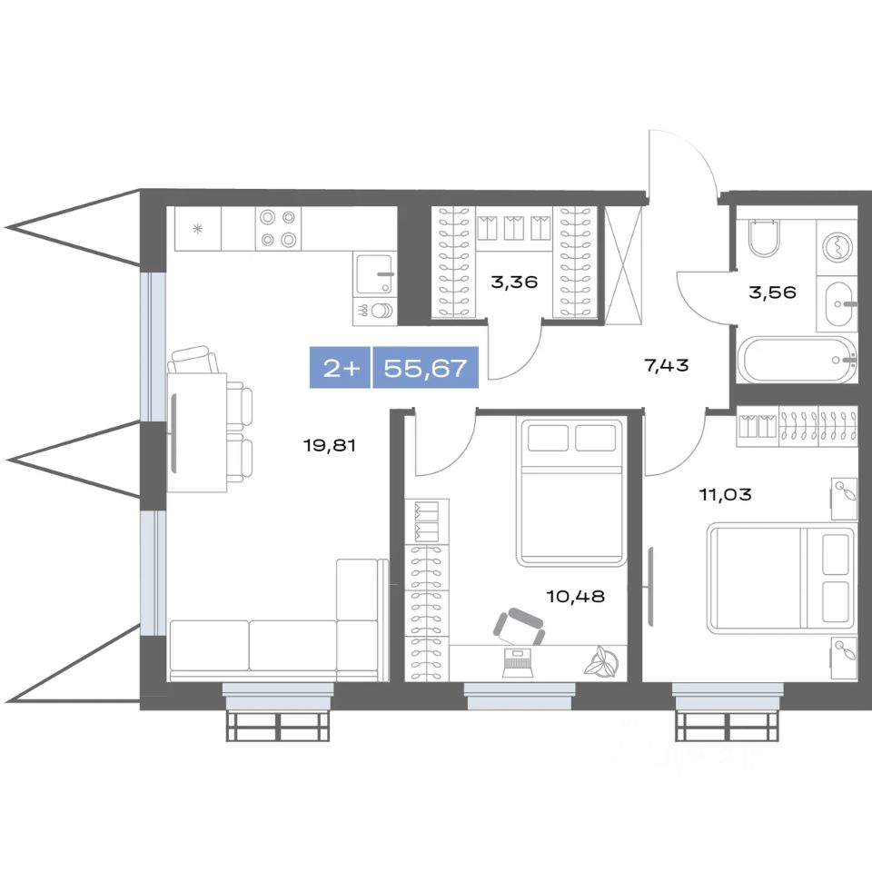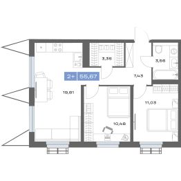 Продаётся 2-комнатная квартира в строящемся доме (Дом 12), срок сдачи: II-кв. 2027, общей площадью 55.81 кв.м., на 21 этаже. Медный - дом в Заречном районе Тюмени.