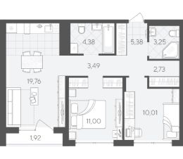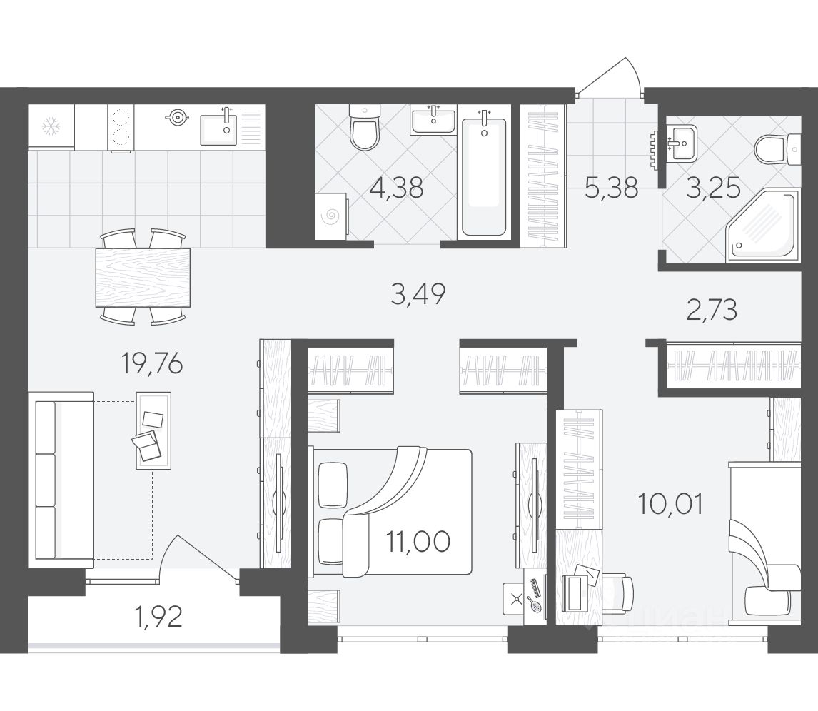 Двухкомнатная квартира 61.92 кв.м на 4 этаже — это удобное пространство для комфортной жизни. Отдельные спальни позволят каждому члену семьи иметь личное пространство. В кухне-гостиной комфортно вместе готовить, проводить семейные ужины или настольные игры с друзьями.