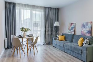 Возможна РАССРОЧКА ! Продается уютная, светлая квартира формата 2 в жилом квартале "Зеленые аллеи" в Тюмени с ремонтом и мебелью. Планировка : кухня-гостиная и две комнаты, гардеробная , санузел.