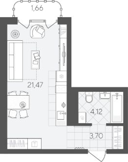 Основная комната в квартире многофункциональна и легко трансформируется в гостиную, спальню или столовую.