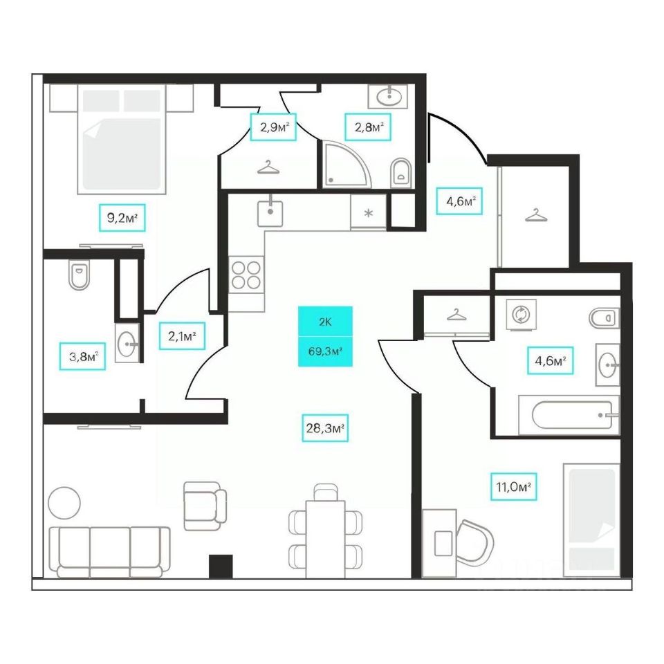 Продаётся 2-комнатная квартира в строящемся доме (Дом 6к1), срок сдачи: IV-кв. 2025, общей площадью 69.3 кв.м., на 17 этаже. Новый жилой комплекс "Futuro" от застройщика "newton" расположен в г. Тюмень на Ставропольской улице.