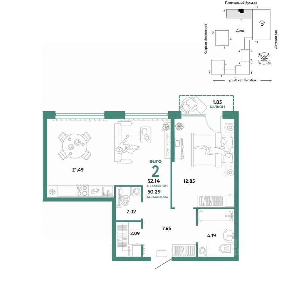 Продается 2комнатная квартира на 6 этаже от застройщика Страна Девелопмент. Площадь квартиры 52,04 кв. м. Стоимость указана без учета акций.