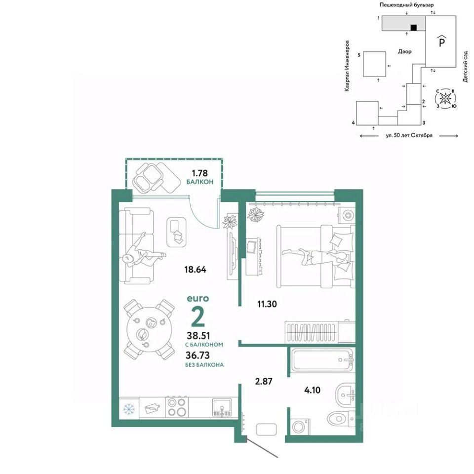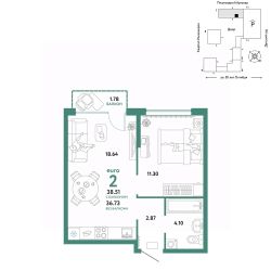 Продается 2комнатная квартира на 4 этаже от застройщика Страна Девелопмент. Площадь квартиры 39,76 кв. м. Стоимость указана без учета акций.