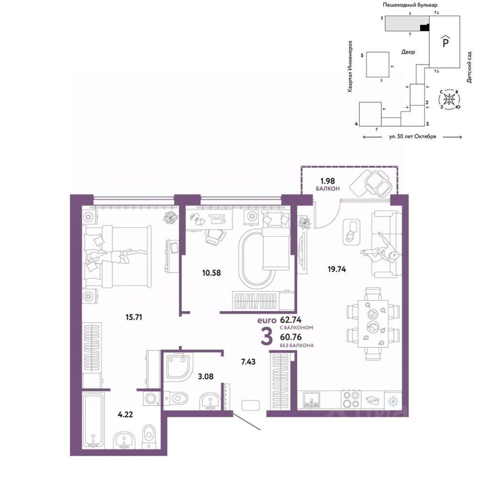 Продается 3комнатная квартира на 6 этаже от застройщика Страна Девелопмент. Площадь квартиры 62,72 кв. м. Стоимость указана без учета акций.