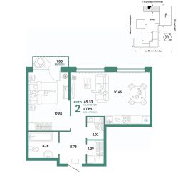 Продается 2комнатная квартира на 7 этаже от застройщика Страна Девелопмент. Площадь квартиры 50,31 кв. м. Стоимость указана без учета акций.