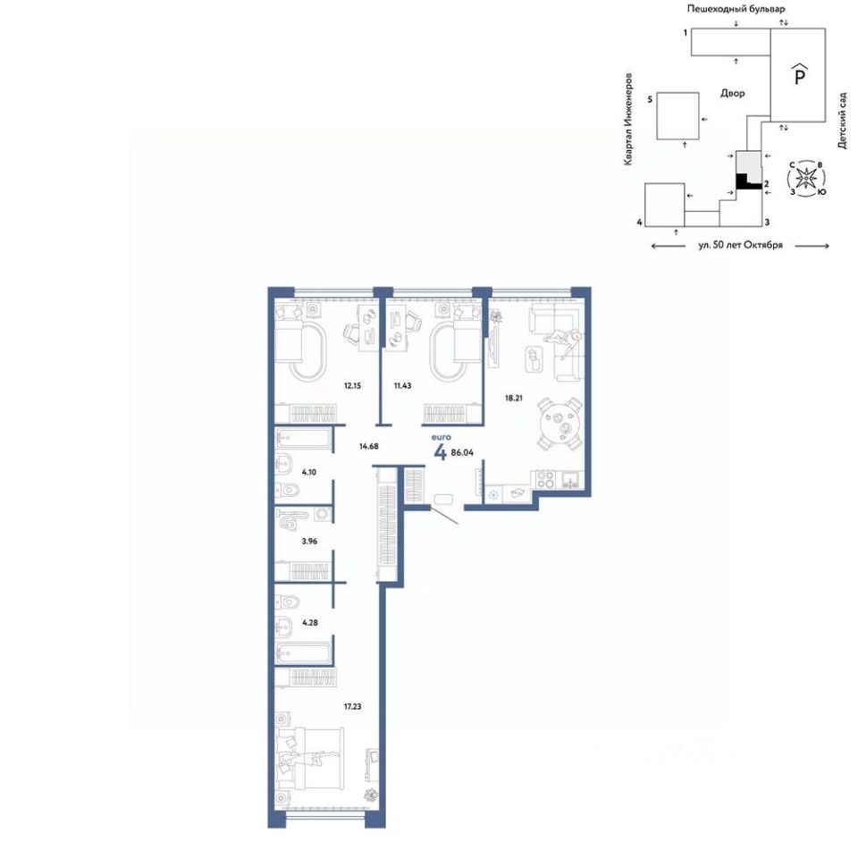 Продается 4комнатная квартира на 9 этаже от застройщика Страна Девелопмент. Площадь квартиры 89,67 кв. м. Стоимость указана без учета акций.
