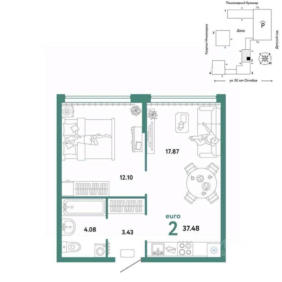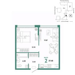 Продается 2комнатная квартира на 13 этаже от застройщика Страна Девелопмент. Площадь квартиры 37,47 кв. м. Стоимость указана без учета акций.