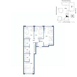 Продается 4комнатная квартира на 13 этаже от застройщика Страна Девелопмент. Площадь квартиры 87,54 кв. м. Стоимость указана без учета акций.