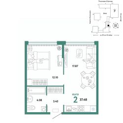 Продается 2комнатная квартира на 14 этаже от застройщика Страна Девелопмент. Площадь квартиры 37,47 кв. м. Стоимость указана без учета акций.