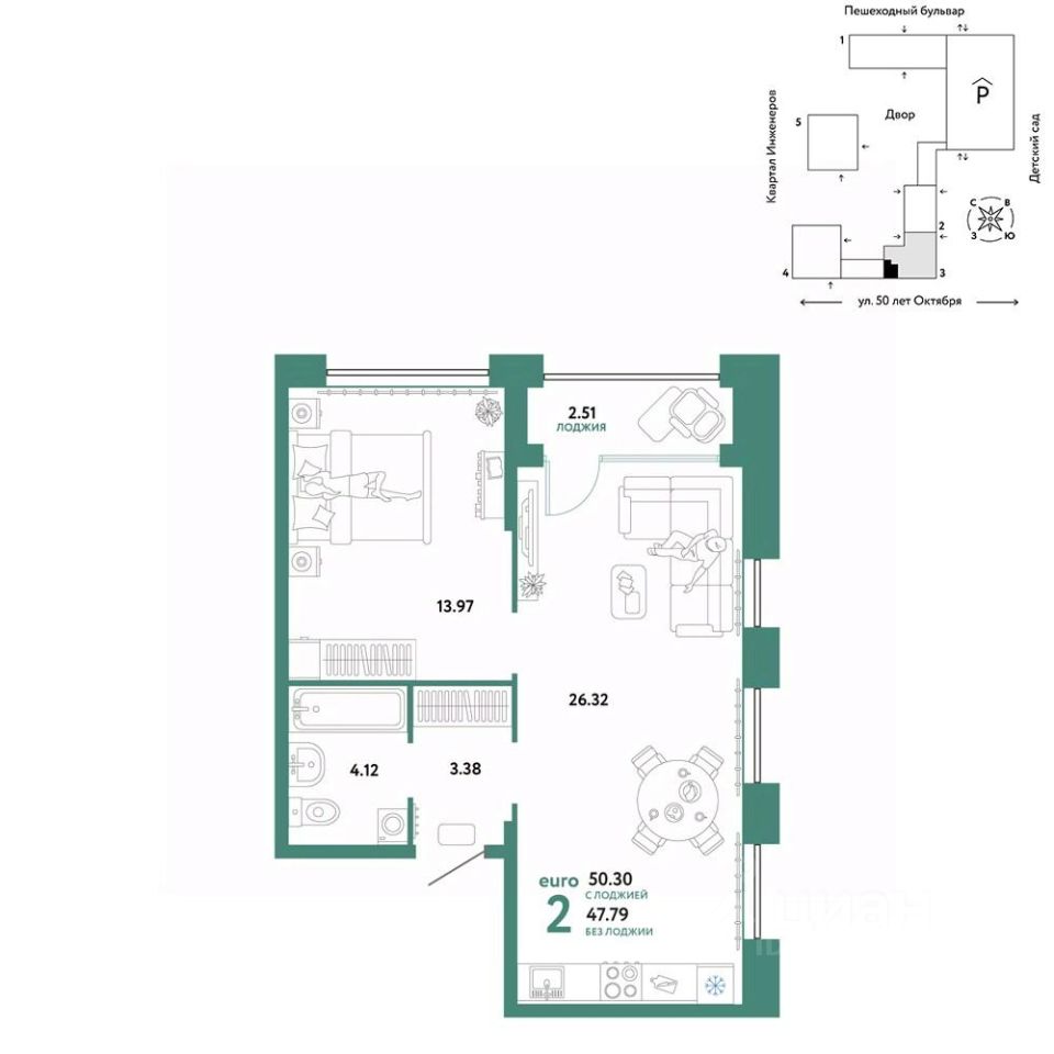 Продается 2комнатная квартира на 11 этаже от застройщика Страна Девелопмент. Площадь квартиры 50,3 кв. м. Стоимость указана без учета акций.