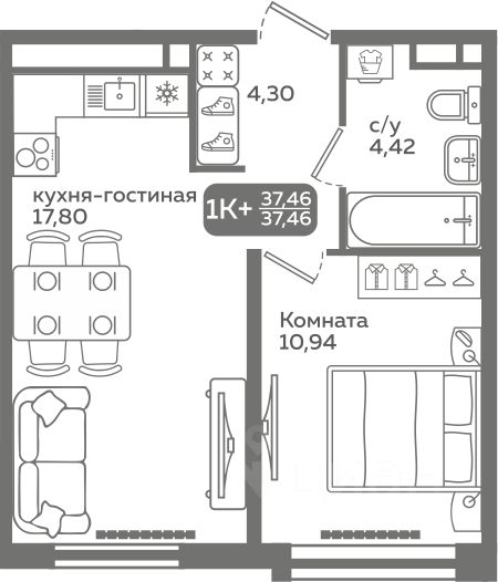 Прямая продажа от застройщика! Продается однокомнатная квартира в строящемся ЖК "Меридиан Слобода", срок сдачи: I-кв. 2027, общей площадью 37.46 м², на 3 этаже из 21. Площадь кухни — 17.8 м².
