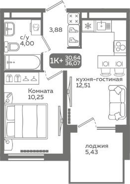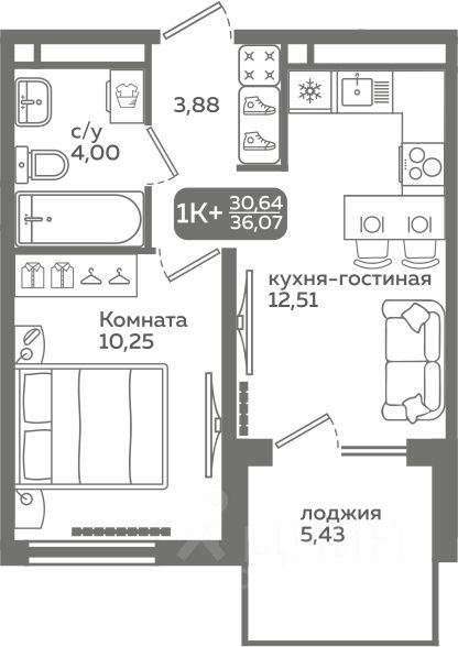 Прямая продажа от застройщика! Продается однокомнатная квартира в строящемся ЖК "Меридиан Слобода", срок сдачи: I-кв. 2027, общей площадью 30.64 м², на 3 этаже из 21. Площадь кухни — 12.51 м².