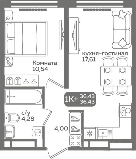 Прямая продажа от застройщика! Продается однокомнатная квартира в строящемся ЖК "Меридиан Слобода", срок сдачи: I-кв. 2027, общей площадью 36.43 м², на 6 этаже из 21. Площадь кухни — 17.61 м².