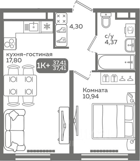 Прямая продажа от застройщика! Продается однокомнатная квартира в строящемся ЖК "Меридиан Слобода", срок сдачи: I-кв. 2027, общей площадью 37.41 м², на 8 этаже из 21. Площадь кухни — 17.8 м².