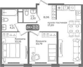 Прямая продажа от застройщика! Продается двухкомнатная квартира в строящемся ЖК "Меридиан Слобода", срок сдачи: I-кв. 2027, общей площадью 52.52 м², на 10 этаже из 21. Площадь кухни — 17.2 м².