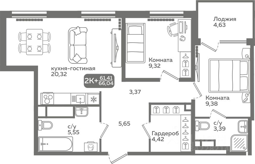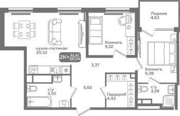 Прямая продажа от застройщика! Продается двухкомнатная квартира в строящемся ЖК "Меридиан Слобода", срок сдачи: I-кв. 2027, общей площадью 61.41 м², на 4 этаже из 21. Площадь кухни — 20.32 м².
