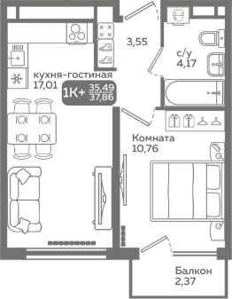 Прямая продажа от застройщика! Продается однокомнатная квартира в строящемся ЖК "Меридиан Слобода", срок сдачи: I-кв. 2027, общей площадью 35.49 м², на 11 этаже из 21. Площадь кухни — 17.01 м².