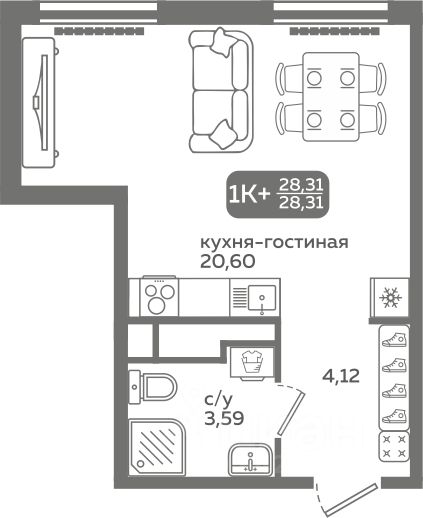 Прямая продажа от застройщика! Продается студия в строящемся ЖК "Меридиан Слобода", срок сдачи: I-кв. 2027, общей площадью 28.31 м², на 12 этаже из 21. Площадь кухни — 20.6 м².