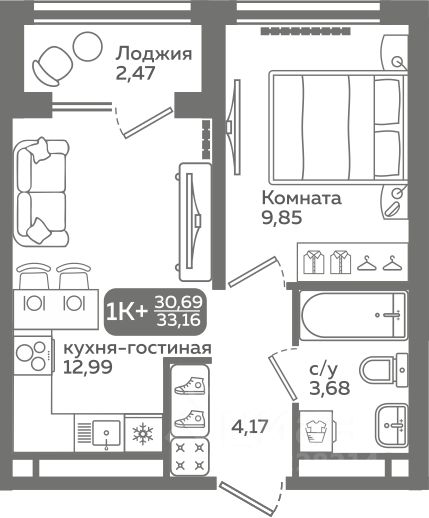 Прямая продажа от застройщика! Продается однокомнатная квартира в строящемся ЖК "Меридиан Слобода", срок сдачи: I-кв. 2027, общей площадью 33.16 м², на 15 этаже из 21. Площадь кухни — 12.99 м².