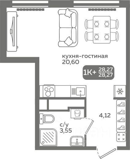 Прямая продажа от застройщика! Продается студия в строящемся ЖК "Меридиан Слобода", срок сдачи: I-кв. 2027, общей площадью 28.27 м², на 16 этаже из 21. Площадь кухни — 20.6 м².