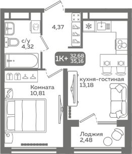 Прямая продажа от застройщика! Продается однокомнатная квартира в строящемся ЖК "Меридиан Слобода", срок сдачи: I-кв. 2027, общей площадью 35.16 м², на 18 этаже из 21. Площадь кухни — 13.18 м².