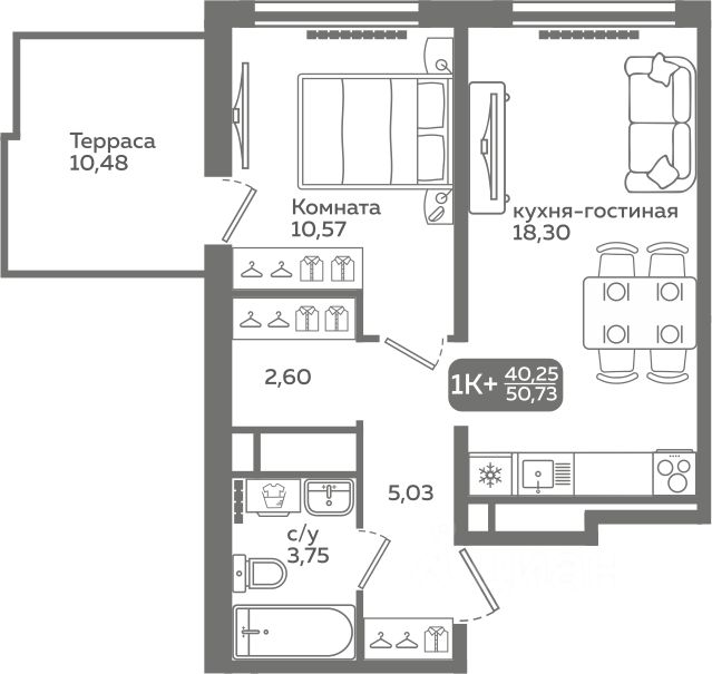 Прямая продажа от застройщика! Продается однокомнатная квартира в строящемся ЖК "Меридиан Слобода", срок сдачи: I-кв. 2027, общей площадью 40.25 м², на 18 этаже из 21. Площадь кухни — 18.3 м².