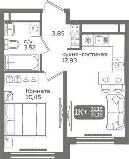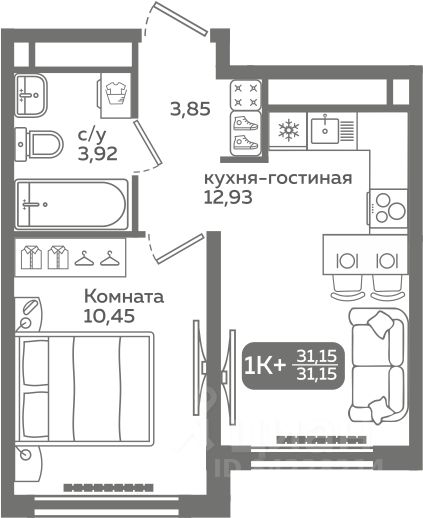 Прямая продажа от застройщика! Продается однокомнатная квартира в строящемся ЖК "Меридиан Слобода", срок сдачи: I-кв. 2027, общей площадью 31.15 м², на 20 этаже из 21. Площадь кухни — 12.93 м².
