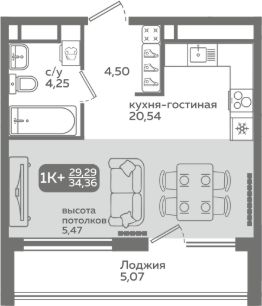 Прямая продажа от застройщика! Продается студия в строящемся ЖК "Меридиан Слобода", срок сдачи: I-кв. 2027, общей площадью 29.29 м², на 21 этаже из 21. Площадь кухни — 20.54 м².