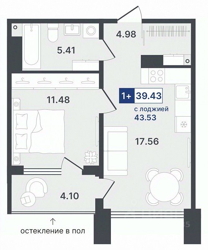 Продаётся 1-комнатная квартира в строящемся доме (ГП-1 (Ставропольская, 1)), срок сдачи: II-кв. 2026, общей площадью 39.43 кв.м., на 3 этаже. Новый жилой комплекс "Один плюс один" от Специализированного застройщика "Звезда" расположен по адресу: г. Тюмень, ул. Ставропольская, 1А.