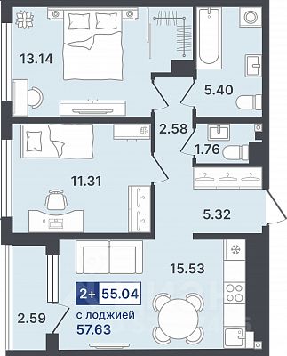 Продаётся 2-комнатная квартира в строящемся доме (ГП-2 (Сергиенко, д. 1)), срок сдачи: IV-кв. 2026, общей площадью 55.04 кв.м., на 5 этаже. Новый жилой комплекс от Специализированного застройщика "Звезда" расположен по адресу: г. Тюмень, по ул. Стройотрядовская.