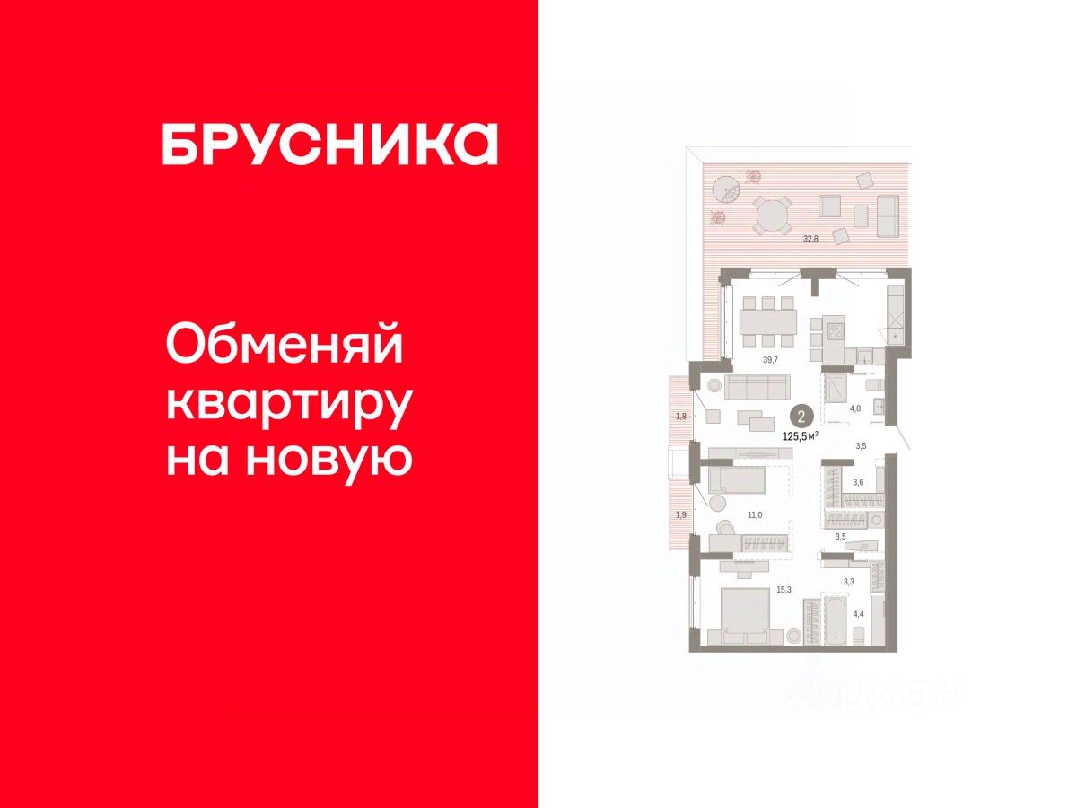 Двухкомнатная квартира с предчистовой отделкой в Кварталы "На Минской" на 8 этаже. Общая площадь: 125.51 кв.м. Высота потолков 2.7 м.