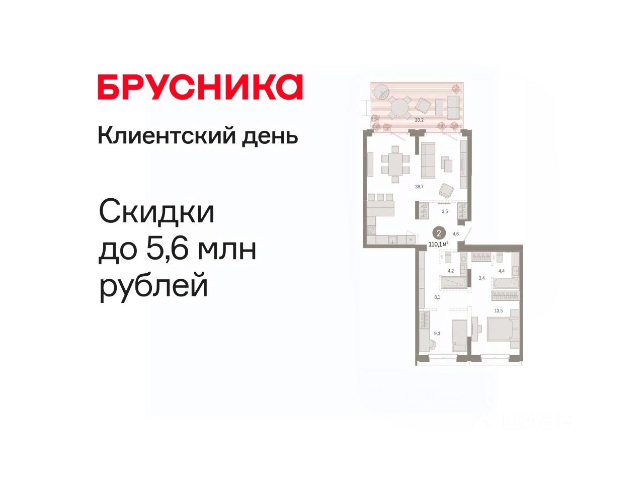 2-комн. квартира от застройщика с предчистовой отделкой в Кварталы "На Минской" на 2 этаже. Общая площадь: 110.06 кв.м. Высота потолков 2.7 м.
