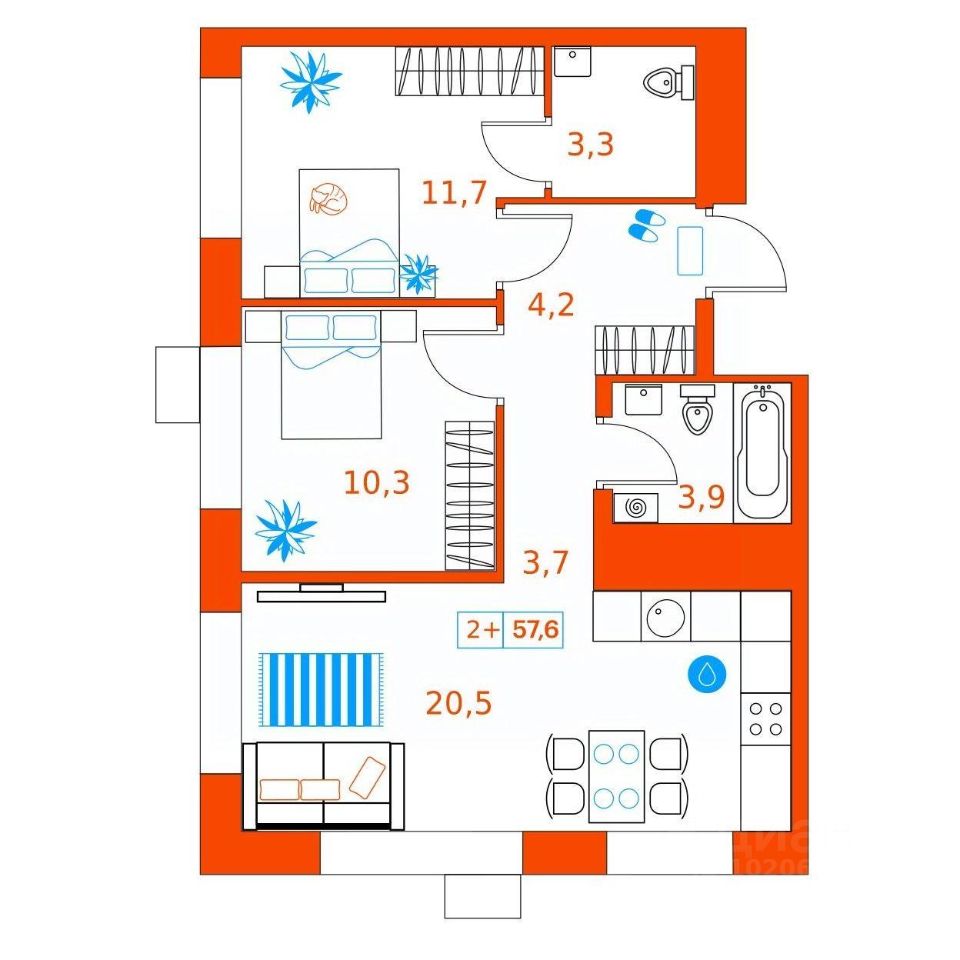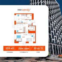 Продаётся 2-комнатная квартира в сданном доме (Ветеранов Труда, 36к1), срок сдачи: II-кв. 2025, общей площадью 57.6 кв.м., на 20 этаже. Новый жилой комплекс от Специализированного застройщика "Суперский" расположен в Ленинском округе Тюмени на ул. Ветеранов труда.