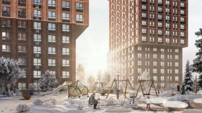Четыре 32-этажные башни со смещенными осями, объединенные общим стилобатом. На крыше дома появятся детские и спортивные площадки, зоны для релакса и отдыха. А в самом стилобате — торговая галерея и паркинг.